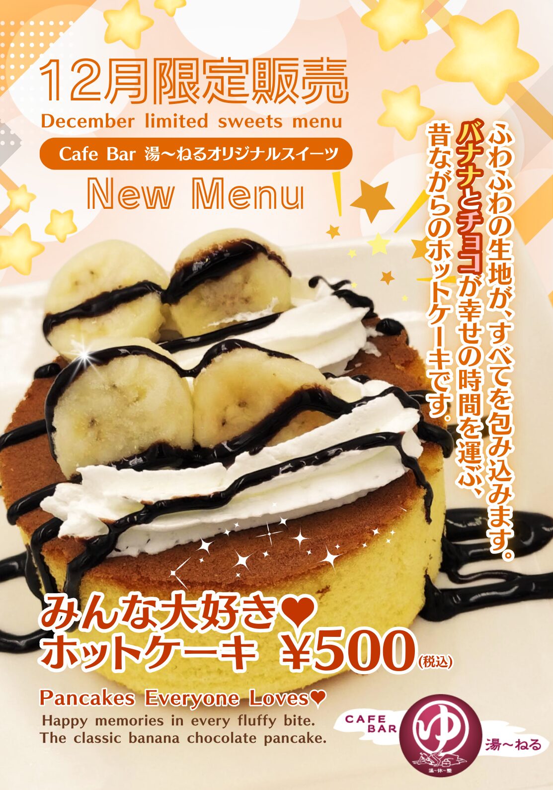 毎月恒例のcafe bar湯~ねるの新メニュースイーツ「みんな大好き♥ホットケーキ」をご紹介!
