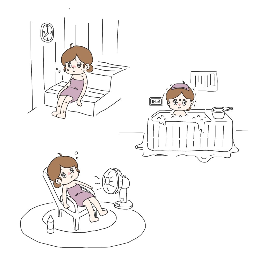 - 【注意!】: 片頭痛がある時や、お酒を飲んだ後のサウナは絶対にNGです!