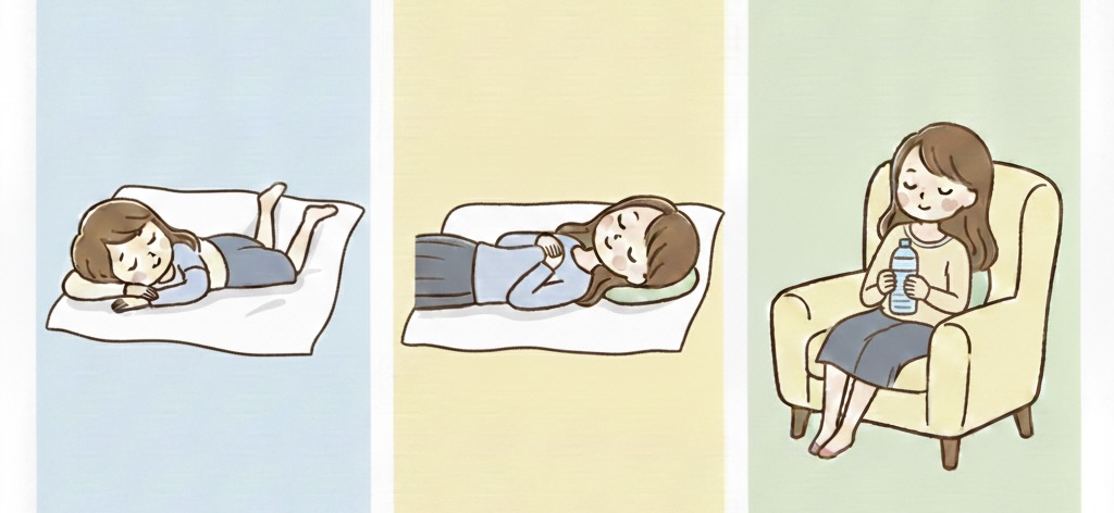 ・うつ伏せ(5〜10分):お腹を温めて内臓を活性化。