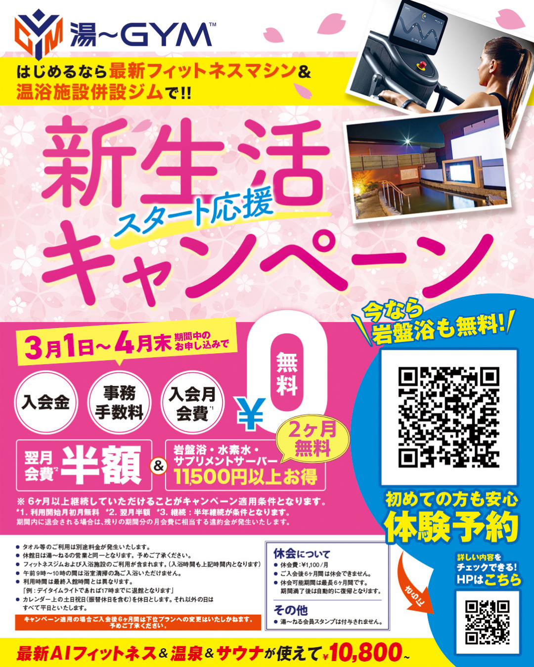 初回体験時の当日の温浴施設の利用無料!